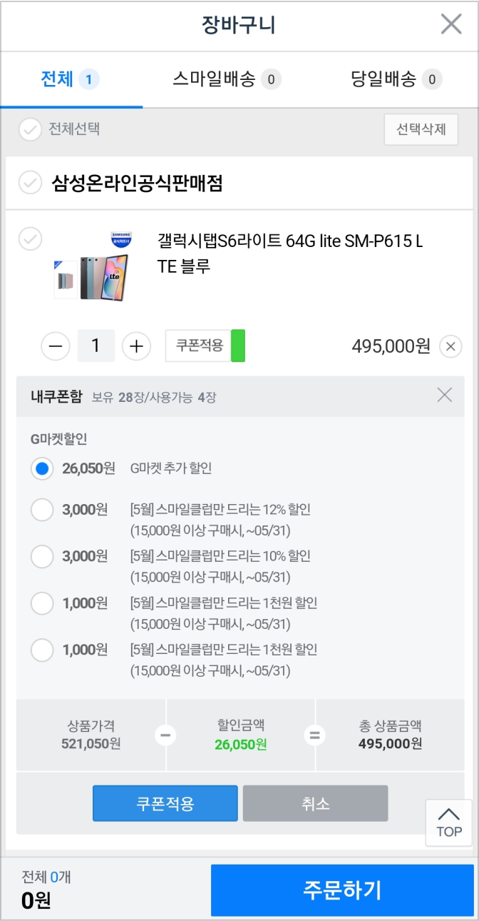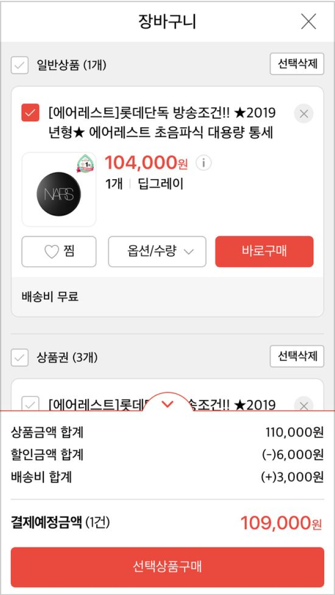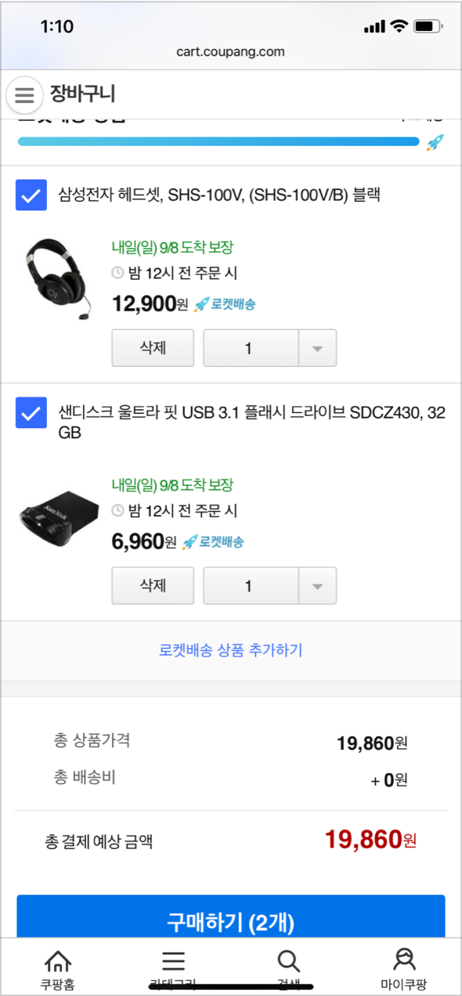 쿠팡/지마켓/11번가 등의 온라인 쇼핑앱의 장바구니 화면을 모아서 장단점을 분석하세요.